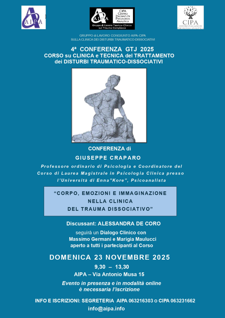 Care colleghe e cari colleghi, Domenica 23 Novembre si terrà la 4ª Conferenza del 2025 organizzata dal nostro Gruppo di lavoro. Il Prof. Giuseppe Craparo terrà una relazione su: